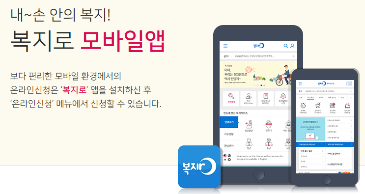 보건복지부 복지앱 등 더 자세한 사항은 복지로 홈페이지에서 참조하시기 바랍니다.