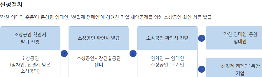 소상공인 확인서 발급홈페이지(sbiz.or.kr/cose/main.do)에서 신청하고 프린트한후에 임차인은 임대인에게, 소상공인은 기업에 전달합니다.
