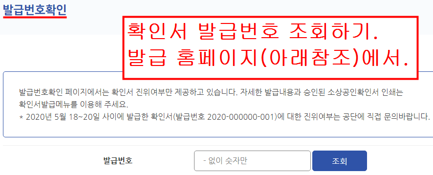 2. 발급한 소상공인 확인서의 발급번호를 홈페이지에서 조회하는 방법.