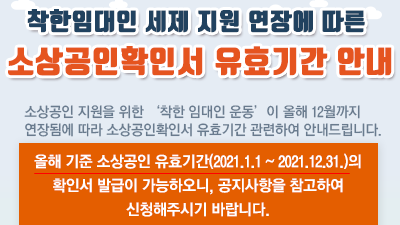 올해 임차료 감면 혜택 등을 받으려면 올해기준으로 발급한 소상공인 확인서가 적용됩니다.
