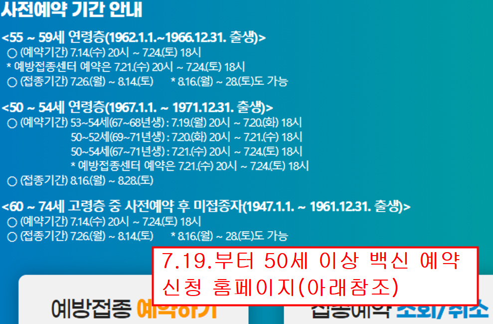 2. 69년생~71년생 : 7월20일 화요일부터 예약가능.