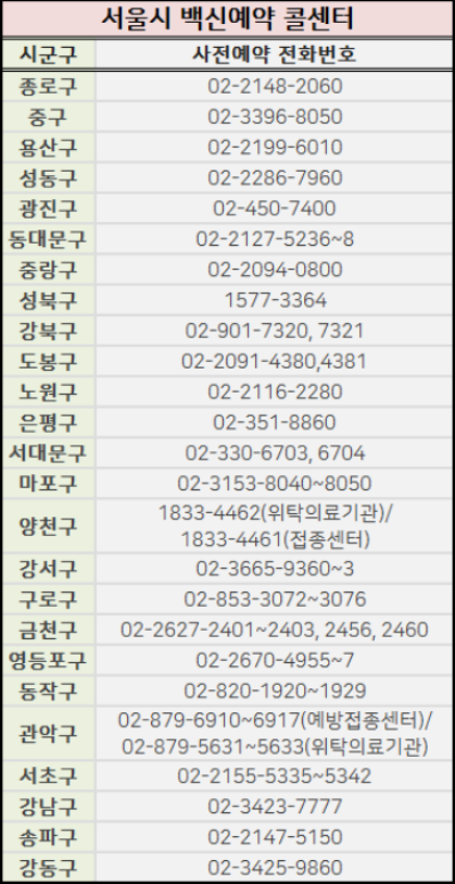 위에도 전국 지역별로 코로나 백신 사전예약 상담센터 전화번호를 남겨놨습니다.