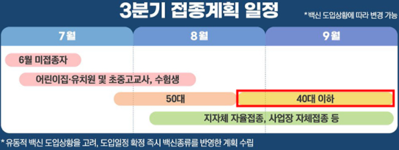 그리고 보시다싶이 40대 이하인 성인19세부터 49세까지도 코로나 백신 접종을 8우러 중 시작합니다.