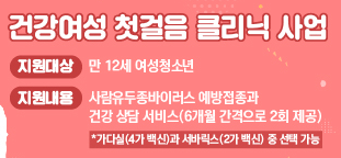 만12세 여성청소년의 경우 사람유두종바이러스 예방접종를 가다실과 서바릭스 중에서 선택가능합니다.