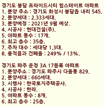 3. 분양예정 ; 2021년 10월 예상.