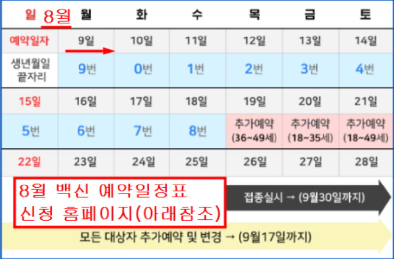 8월9일 월요일부터 18세이상 49세이하 백신 신청이 시작됩니다.
