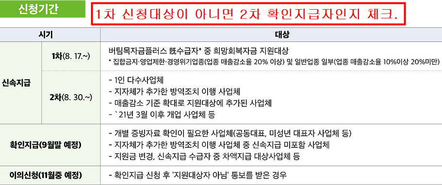 그리고 1차 신청명단에 없습니다라고 안내를 받은 1차 미지급자는 2차 지급대상이나 확인지급자 또는 이의신청을 해야하는 경우일수있습니다.