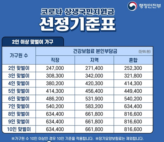 아래에 가구원수별로 건강보험료 본인부담금을 표로 정리해놓것을 첨부하였으니 참고하시기 바랍니다.