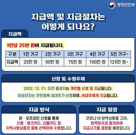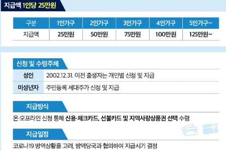 1인당 25만원 지급 / 고소득자가 아니라면 대부분 80%이상 신청가능.