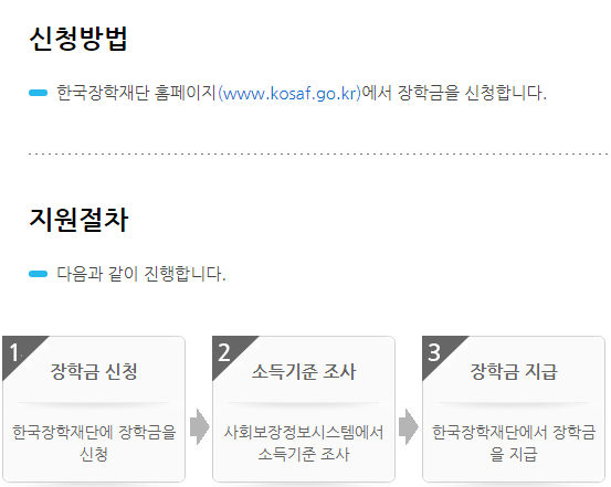 세번째. 한국장학재단에서 장학금을 지급한다고 합니다.