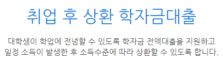 대학생이 학업에 전념하도록 취업후에 상환할수있도록 하는 지원 제도입니다.