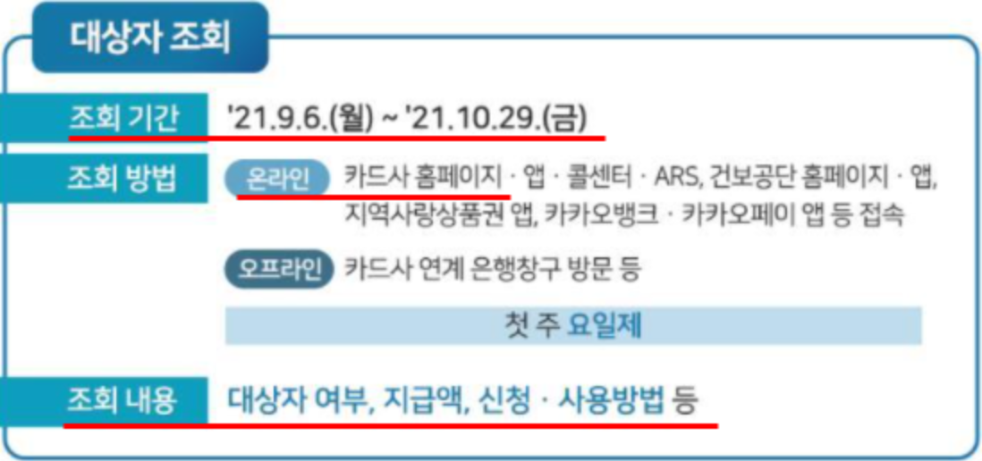 1. 대상자 확인 조회 및 신청기간 : 2021.9.6.월요일~2021.10.29.금요일