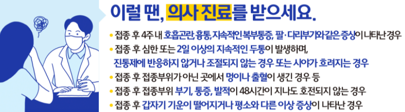 백신 접종후에 흡연과 음주, 무리한 신체활동을 하지 마세요.