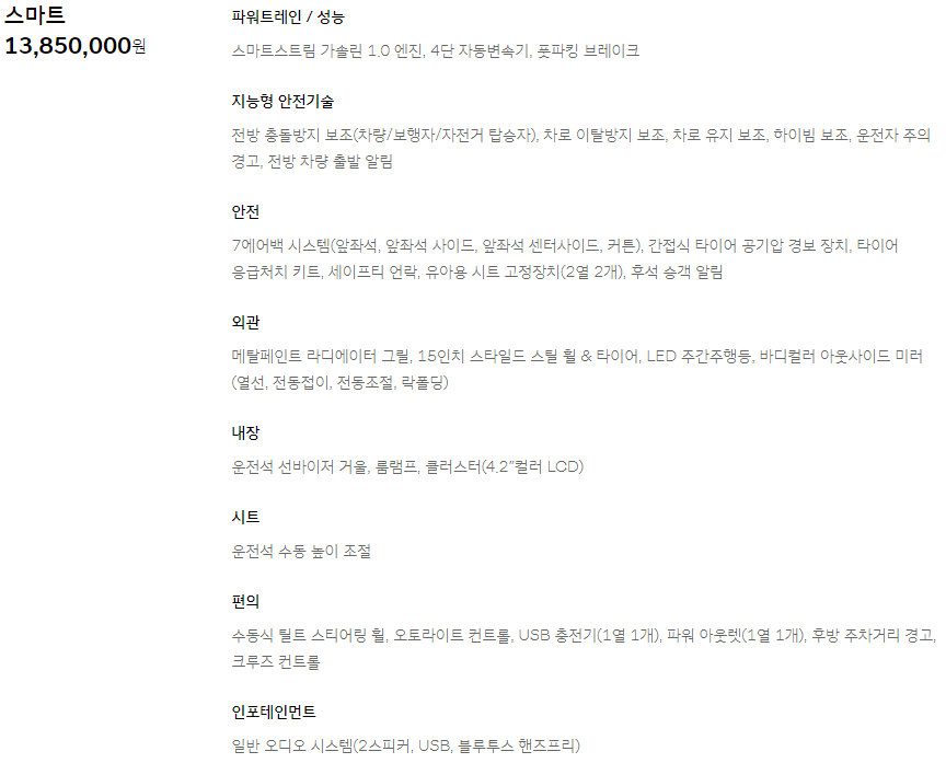 현대 캐스퍼 온라인 가격표별로 기본품목 및 옵션을 확인하시기 바랍니다.