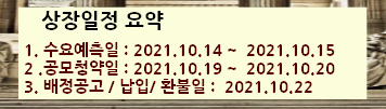 청약일정(2021.10.19.~10.20.) / 수요예측일(2021.10.14.~10.15.)