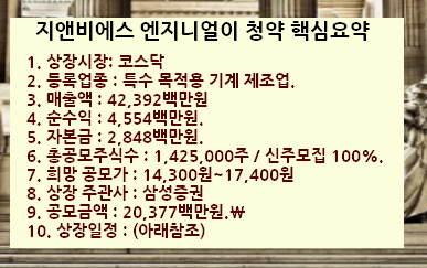 지앤비에스 엔지니어링 청약 핵심정보를 간략하게 살펴보겠습니다.