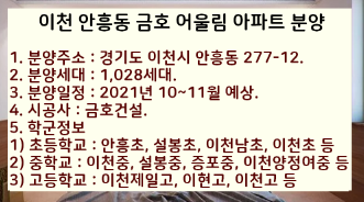 이렇게 오늘은 경기도 이천시에서 분양하는 안흥동 금호 어울림 아파트를 살펴봤습니다.