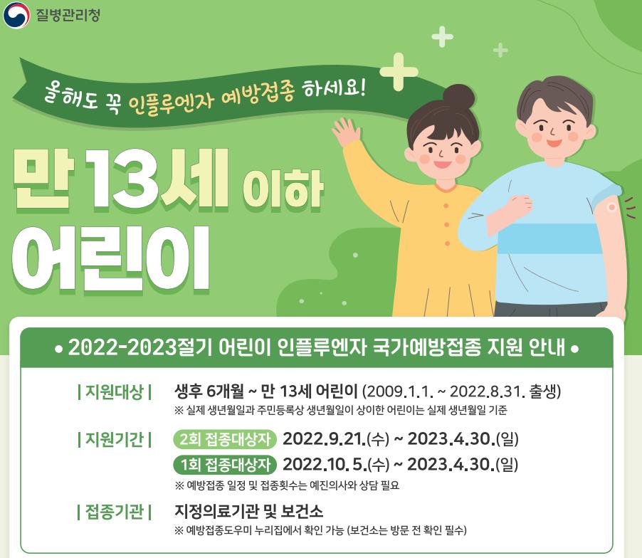 독감예방접종 무료대상 시기는 2022년 10월5일부터 2023년 4월30일까지입니다.