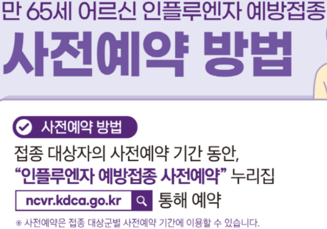 독감예방접종 사전예약 홈페이지(ncvr.kdca.go.kr)을 확인하세요.