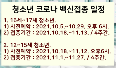 이상으로 중학생과 고등학생 백신 접종 시기 및 일정표를 정리해드렸습니다.