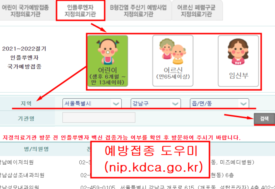 독감예방접종 지정병원 홈페이지에서 찾으세요.