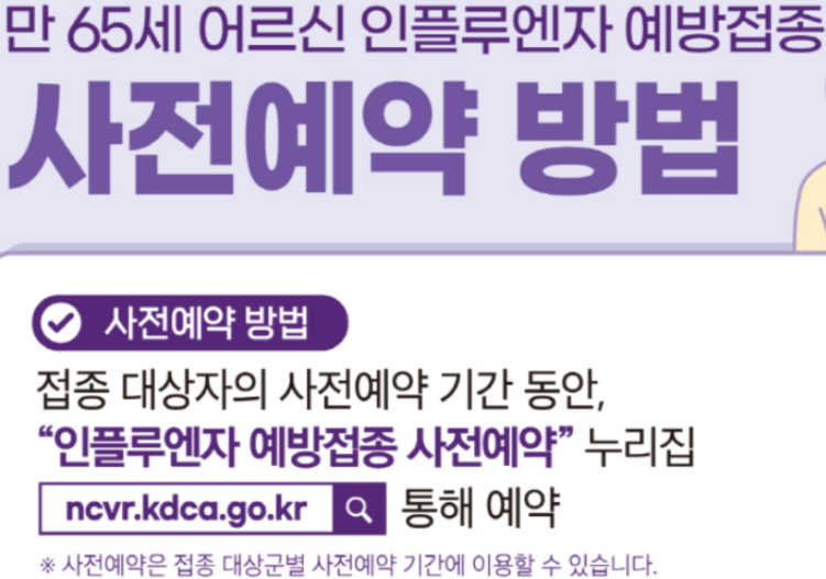 아래 만65세이상 어르신들은 질병관리청 예방접종 사전예약이 가능합니다.