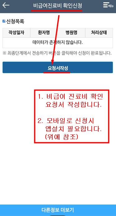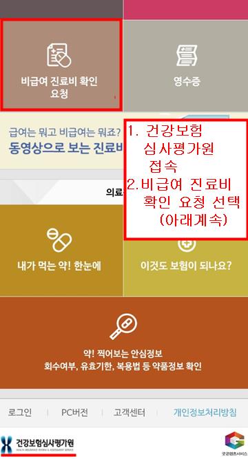 세번쨰. 컴퓨터와 스마프톤(앱 설치 필요)에서 쉽게 진료비영수증을 첨부해서 확인요청할수있습니다.