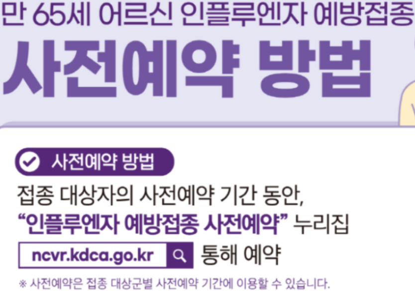 인플루엔자 예방접종 홈페이지(ncvr.kdca.go.kr)에서 사전예약하세요.