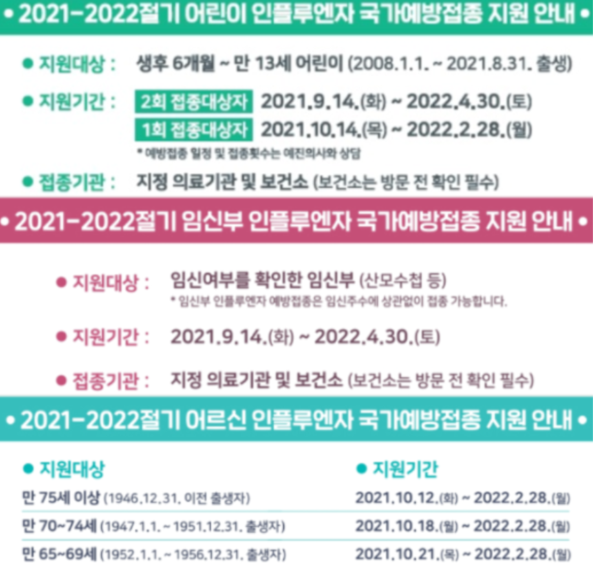 2021-2022절기 인플루엔자 국가예바업종 지원사업은 무료이기 때문에 해당자는 신청하는것이 좋습니다.