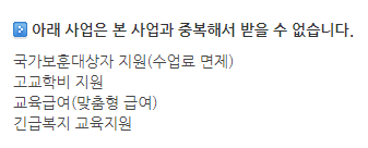 가령 국가보훈대상자로 수업료 감염되거나 고교학비 이미지란 받고있거나 교육 급여 등을 받고계신분은 안됩니다.