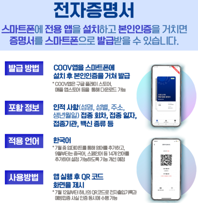 가장 추천하는 방법은 COOV앱에서 QR코드를 실행하면 예방접종증명서까지 같이 확인됩니다.