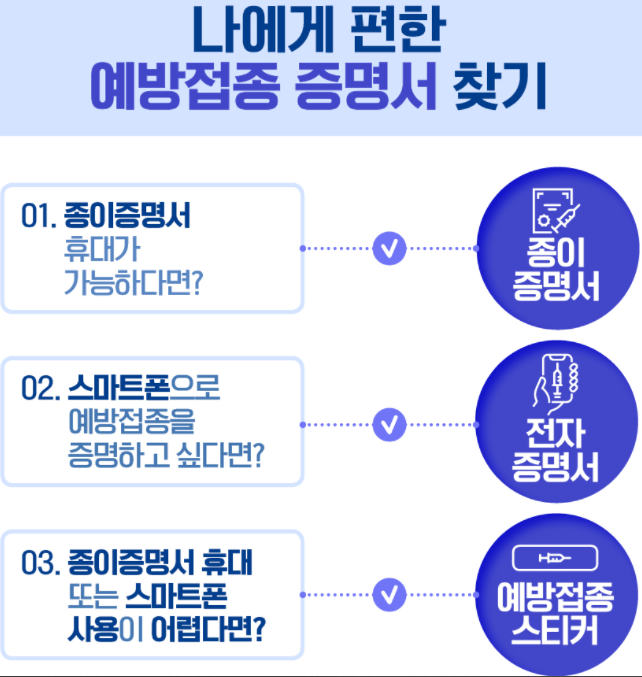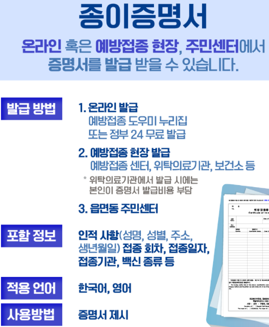 예방접종도우미 누리집 홈페이지에서 증명서 신청하세요.