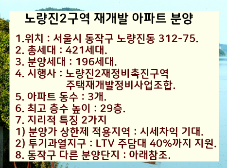 이렇게 오늘은 많은분들이 관심을 갖고있는 서울 아파트 분양단지중에서 동작구 노량진에 위치한 노량진2구역과 6구역의 분양계획을 정리해봤습니다.