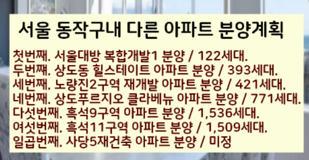 서울 동작구내 분양예정 다른 아파트들 확인하세요.