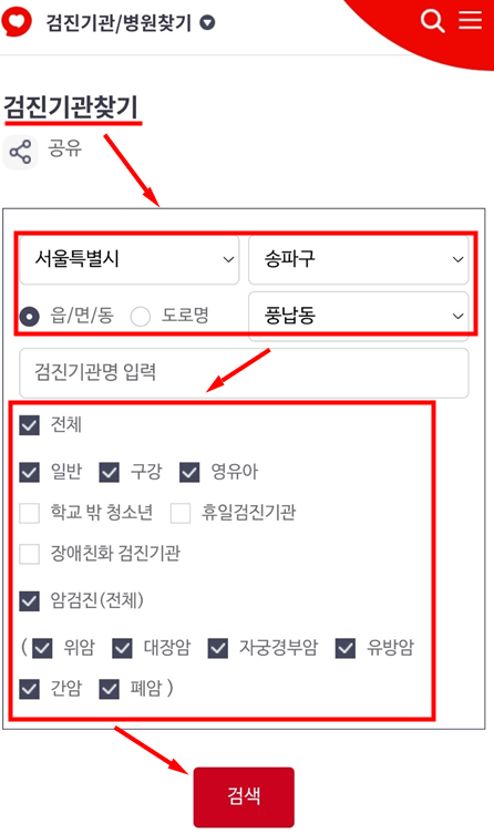 그리고 건강검진 항목별로 선택할수가 있습니다.