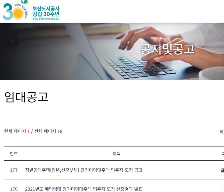 부산지역 공공임대아파트 분양공고를 확인하는 방법은 다음과 같습니다.