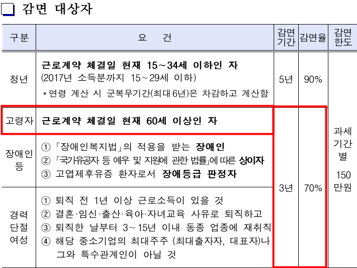 소득세 감면율도 60세이상은 70%까지지만 청년은 90%까지 지원됩니다.