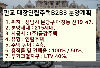 판교 대장 연립주택 B2, B3구역 분양계획을 살펴보겠습니다.