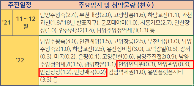 안양 3기 신도시는 공급지역 3곳을 확인하세요.