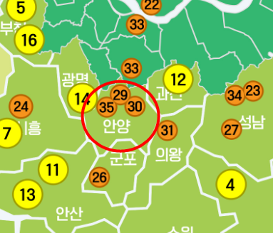 위 지도에서 보시듯이 안양시내에서 인덕원과 관양동, 매곡동은 크게 위치적으로 멀지않습니다.