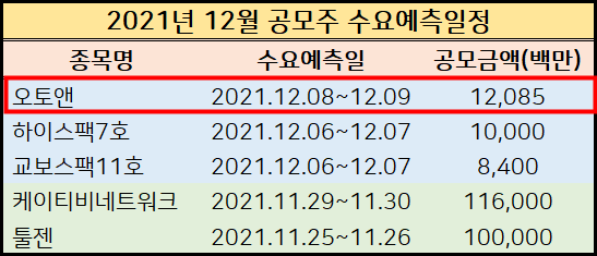 (수요예측일은 2021.12.8.~12.9.에 예정입니다. )