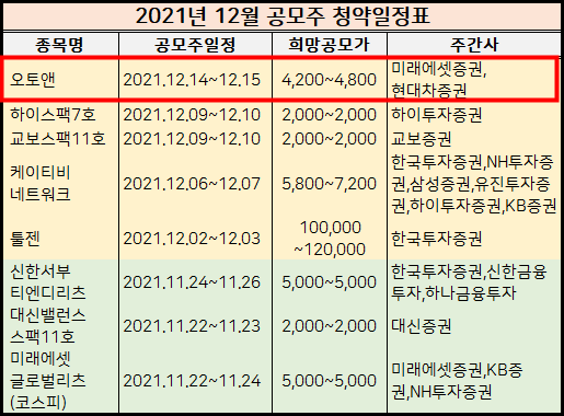 2. 공모주 청약일정 : 2021.12.14.~12.15.