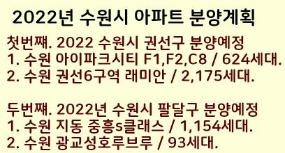 2022년 수원시에서 분양예정인 아파트들을 지역구별로 정리했습니다.