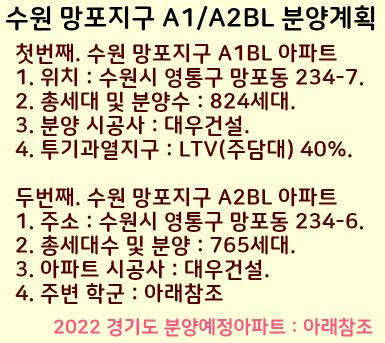 2022년에 분양예정인 수원 망포지구 A1블록과 A2블록 아파트 분양계획을 정리하였습니다.