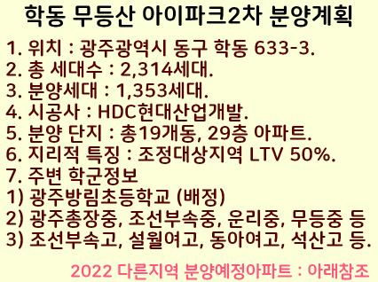 아래 2022년 광주광역시 아파트 분양계획 19곳도 정리해놨으니 확인하세요.