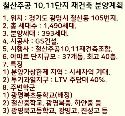 오늘은 분양가상한제 적용지역의 철산주공 10, 11단지 재건축 아파트 분양계획을 정리했습니다.