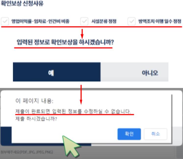 소상공인 손실보상 대상자가 아닙니다라는 2가지를 확인해야합니다.