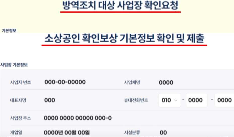 위에처럼 소상공인 손실보상금 대상자분들은 '방역조치 대상 사업장 확인요청'을 하셔야합니다.