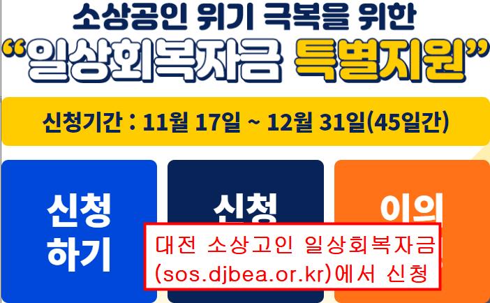 아래 대전과 부산 일상회복자금 신청을 계속해서 알려드리겠습니다.