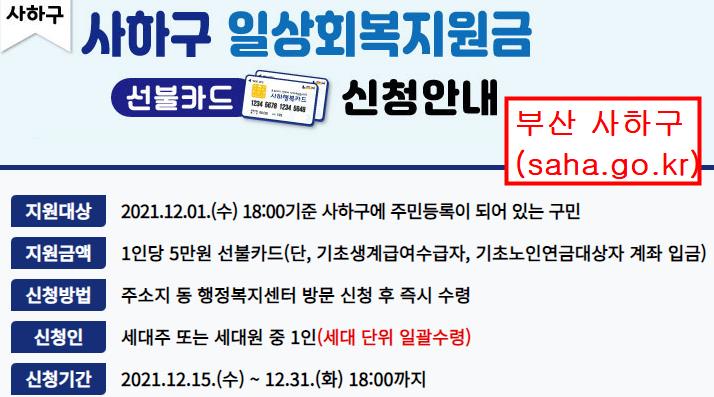 네번쨰. 부산 사하구 일상회복지원금 5만원 / 2022.12.31.까지